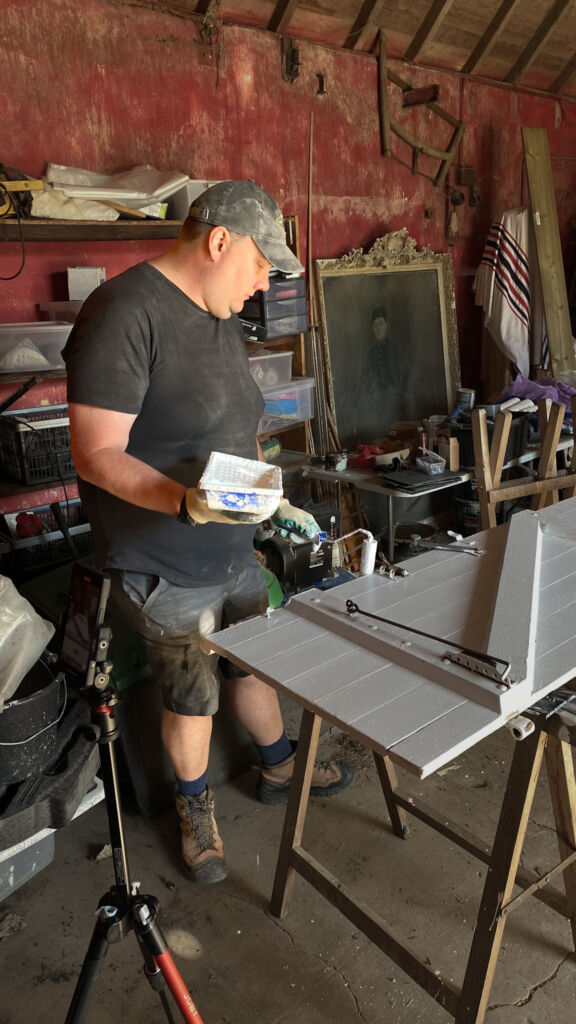 Inside the château, we handled more detailed cleaning projects like washing cupboards, carefully polishing antique plates, and moving furniture that was set aside for sale. Some days we cleared storerooms and organized antiques for donation or sale, while other days we did light gardening to help keep the grounds in shape. We even set up a design studio space for the host.